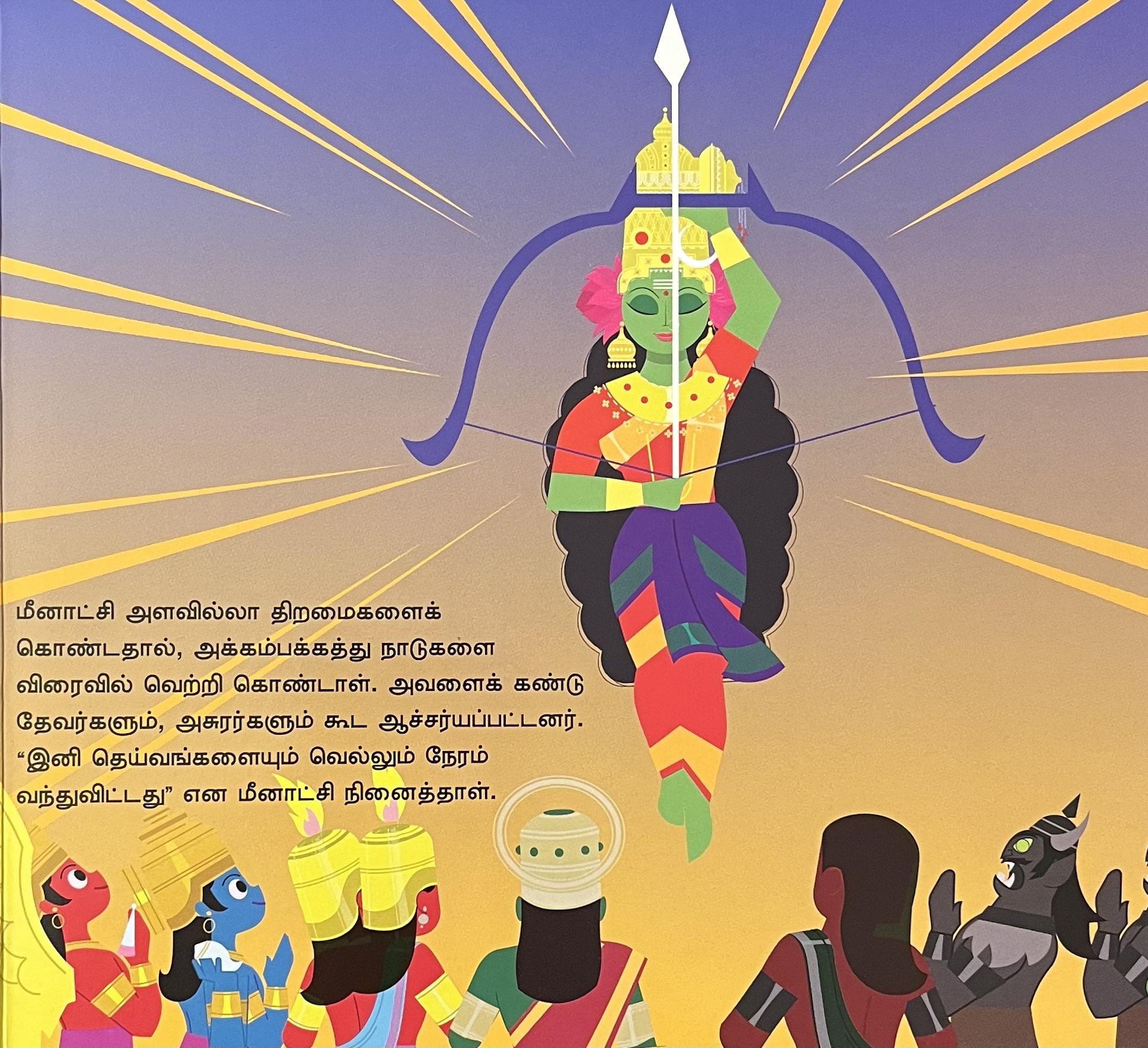 Meenakshi Amman is a beautifully illustrated children’s book that introduces young readers to the legendary Goddess Meenakshi, highlighting her strength and significance in Tamil culture. Through captivating stories and vibrant images, it sparks interest in cultural heritage and mythology.