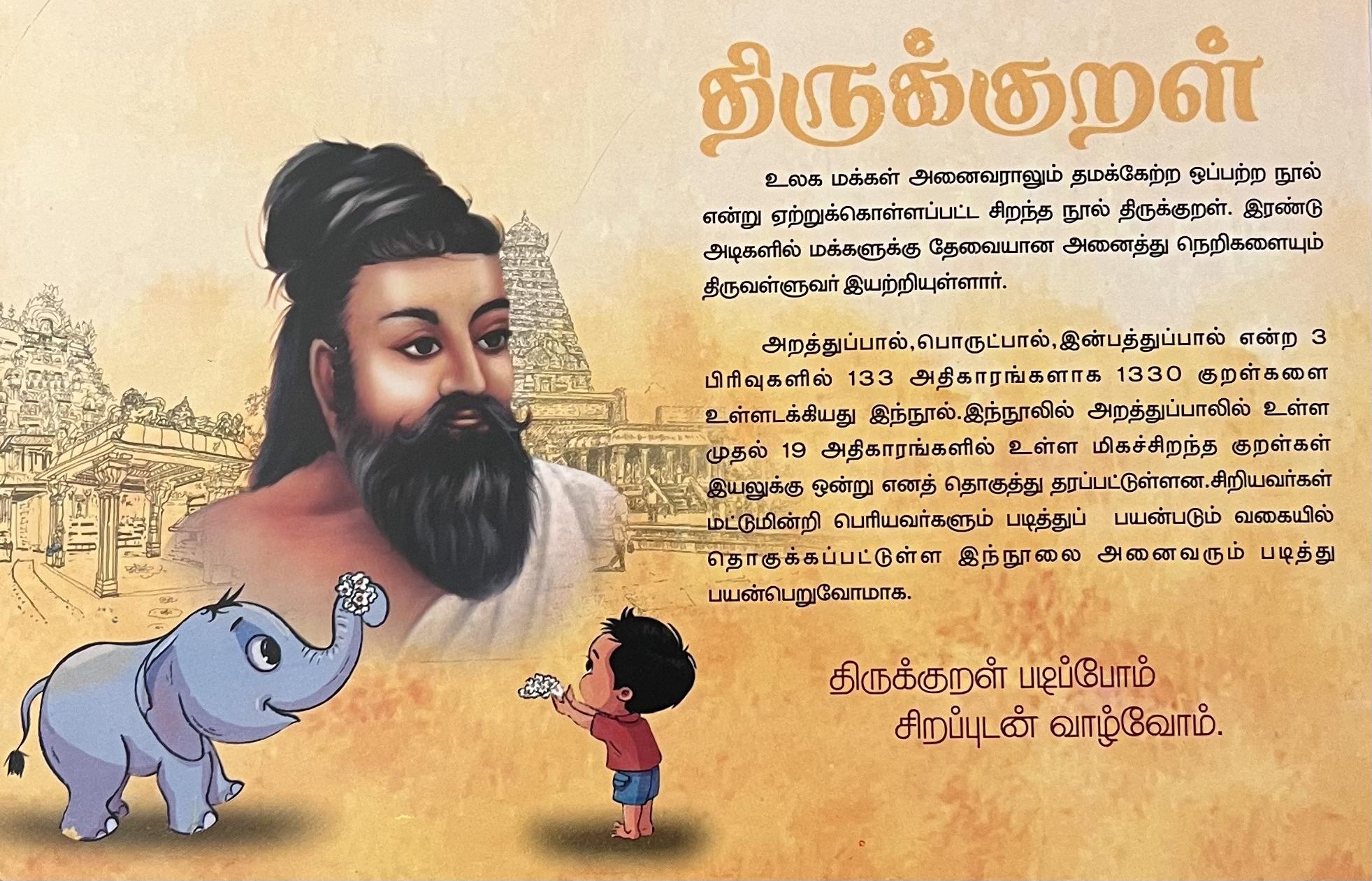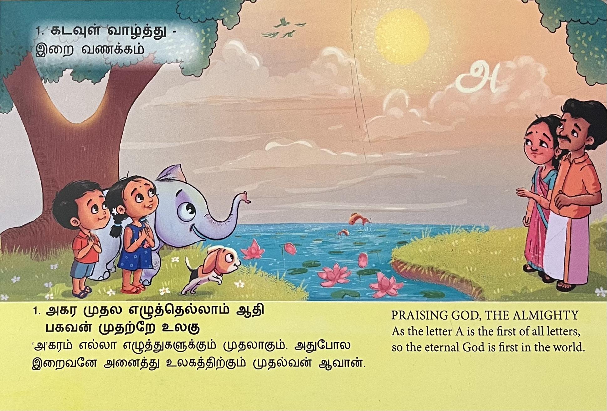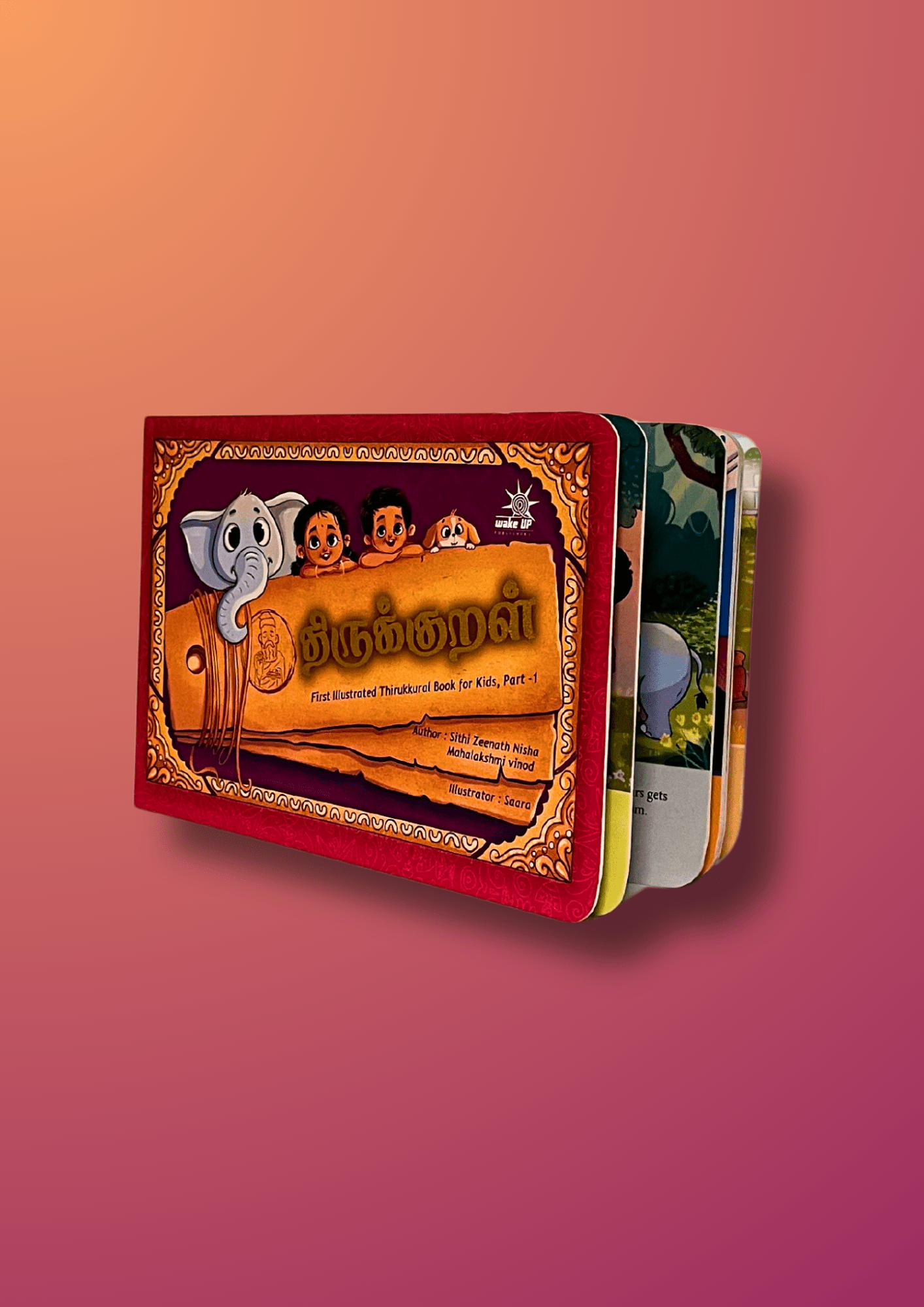 Thirukkural is a timeless classic that introduces young readers to the wisdom of ancient Tamil literature. This beautifully crafted, picture-based book presents the important teachings of Thiruvalluvar in a simple format, making it easy for children to understand. With engaging illustrations accompanying the short, meaningful verses, kids will learn valuable life lessons on ethics, morality, and values that are still relevant today. Perfect for nurturing young minds with timeless wisdom through visual storytelling.
