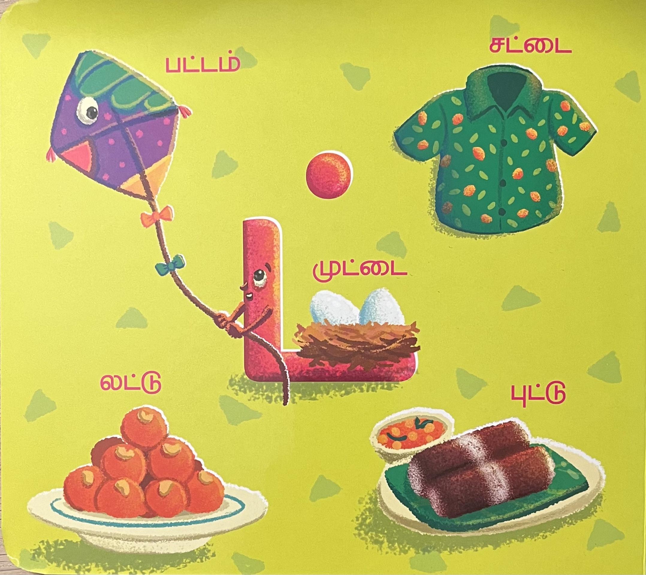 Vidaipom Mei Tamizhai is a beautifully illustrated book that celebrates the rich heritage of the Tamil language, one of the most cultivated and structured languages in the world. This book introduces young readers to the Tamil consonants, known as ‘Mei Elutukkal’ (meaning ‘body’ letters), with 4 to 5 words to learn from each. Through engaging visuals and meaningful examples, it offers a wonderful way for children to connect with and understand the beauty of the Tamil script.
